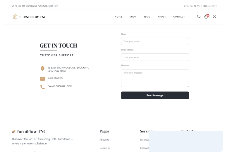 Newsletter form is essential to generate leads for your business. FurniFlow TNC has an amazing newsletter form.